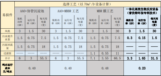 一体化高效生物反应设备采用普优特环保公司的专利技术(一体化生物填料,专利号:ZL201821639357.4)一体化污水处理设备(ZL201821639736.3),相比较其他常规A2O工艺、MBR、MBBR等技术,公司采用技术具有出水效果好、出水稳定、水质波动对其无影响、运行成本低、后续更换易损件费用低等优点。