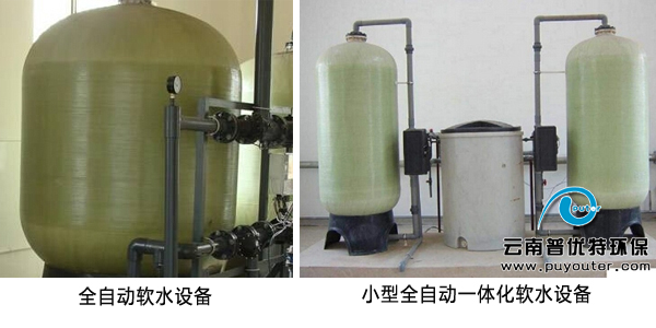 软化水设备的工作原理:由于水的硬度主要由钙、镁形成及表示,故般采用阳离子交换树脂(软水器),将水中的Ca2+、Mg2+(形成水垢的主要成份)置换出来,随着树脂内Ca2+、Mg2+的增加,树脂去除Ca2+、Mg2+的效能逐渐降低。当树脂吸收一定量的钙镁离子之后,就必须进行再生,再生过程就是用盐箱中的食盐水冲洗树脂层,把树脂上的硬度离子在置换出来,随再生废液排出罐外,树脂就又恢复了软化交换功能。